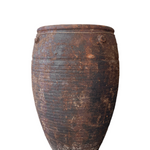 Leda - the great beauty who birthed Helen of Troy - is the inspiration behind our elegant and ethereal mid-sized olive pot. Imbued with deep, dark earthen tones and aged ridging, and a delicate rim with raised bullet detailing.