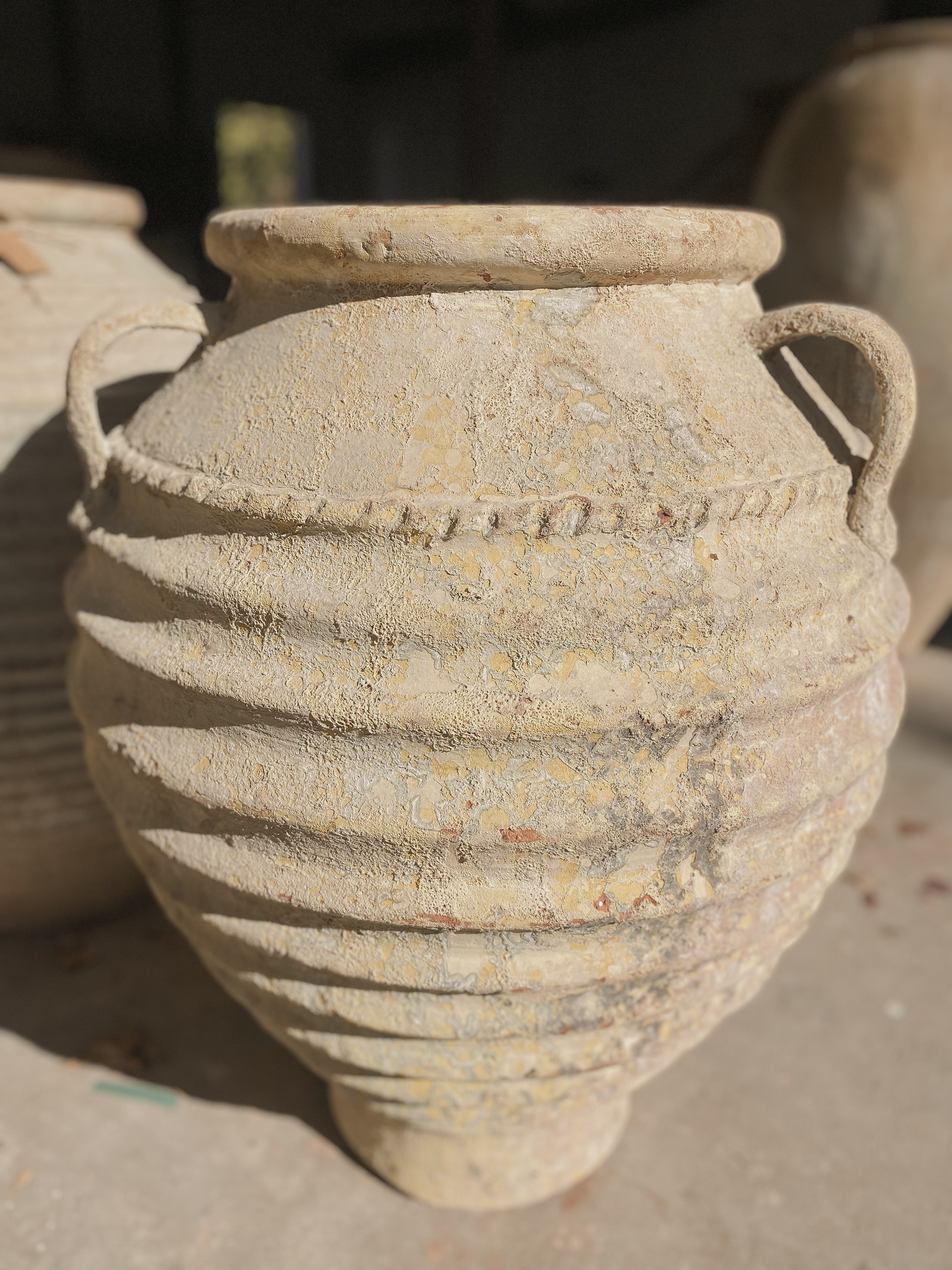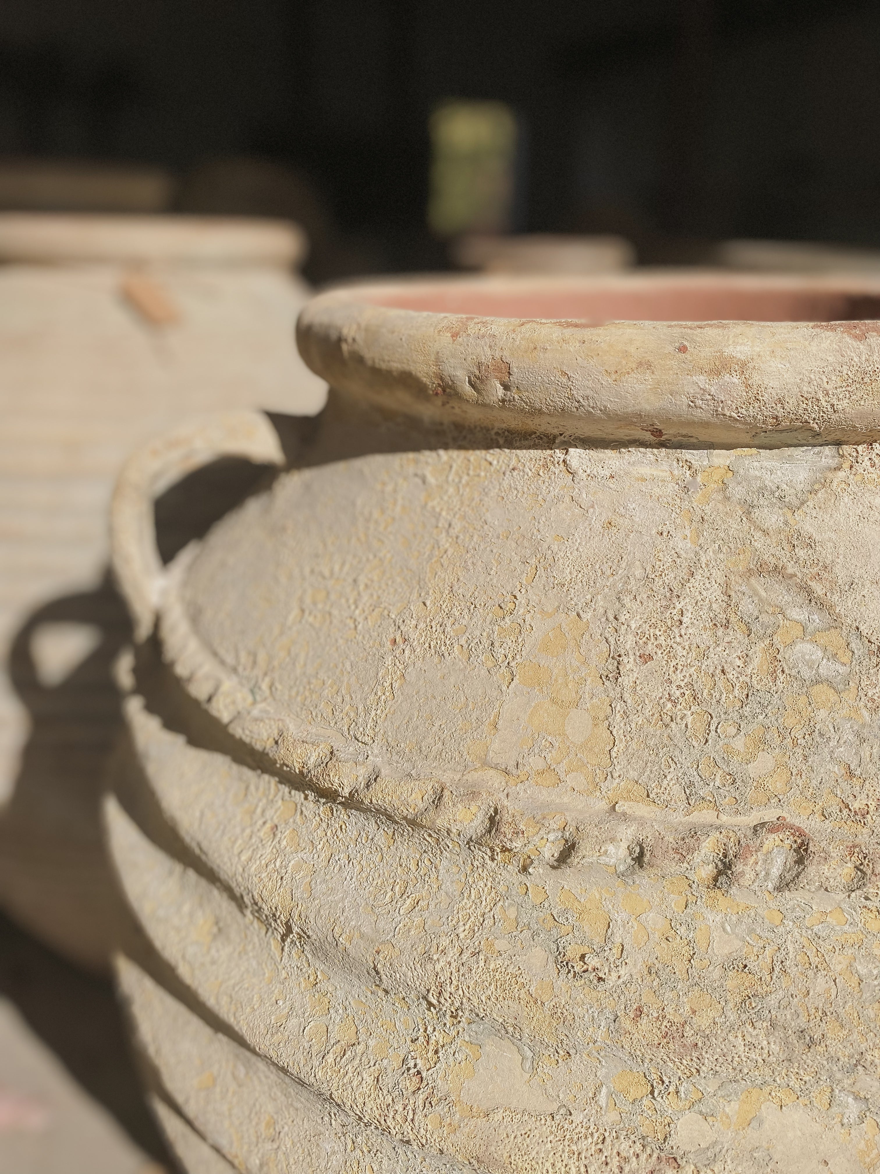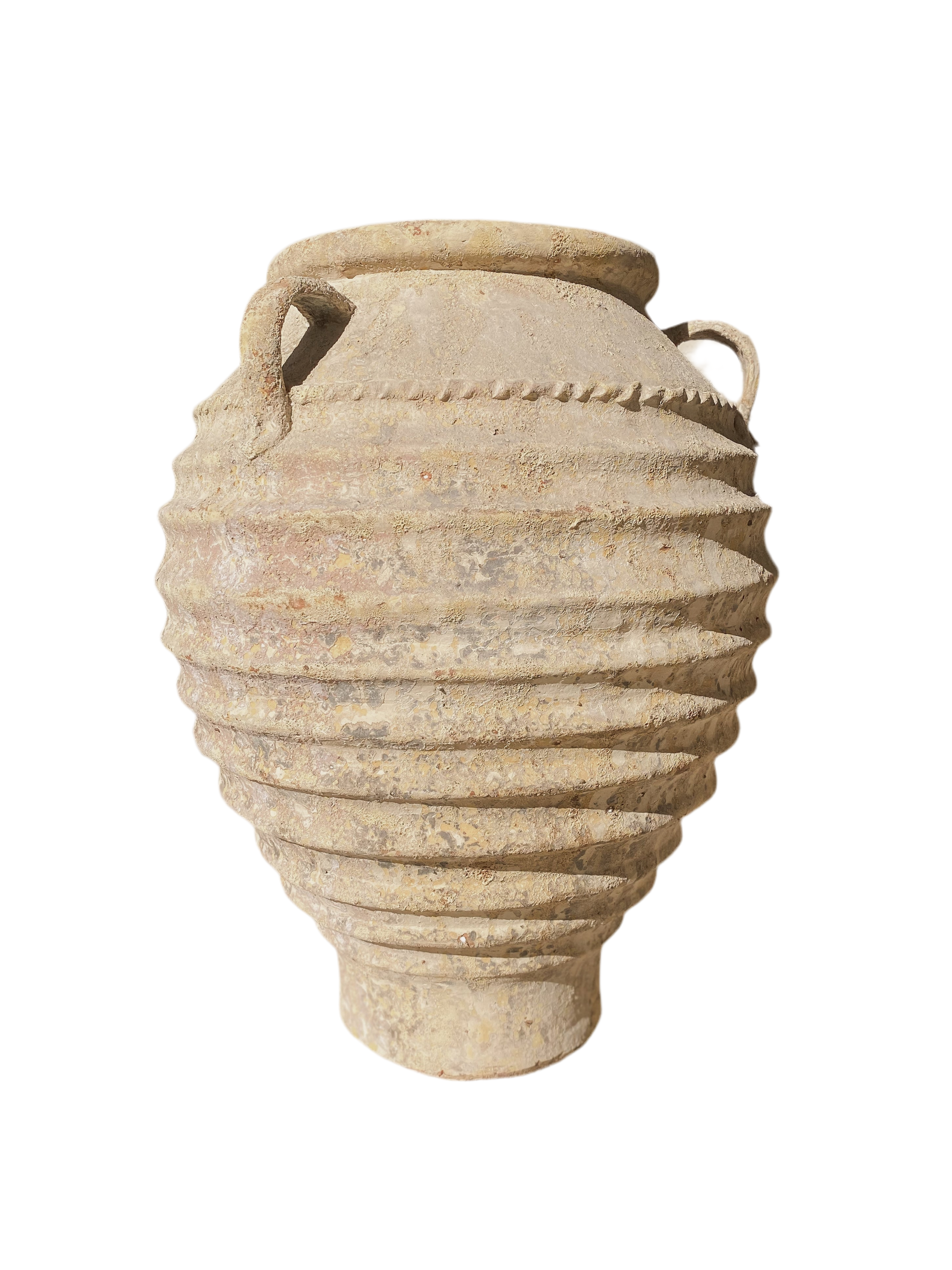 Vegas’ statuesque size, coupled with ridged detail, elegant handles, and intricate edging, give her a majestic and regal feel. She has the sense of retaining the genealogy of Ancient Greek potters and ceramicists. Craftsmanship and attention to detail are the hallmarks of Vega, while also weaving in the texture and patina of an ancient and weathered piece.